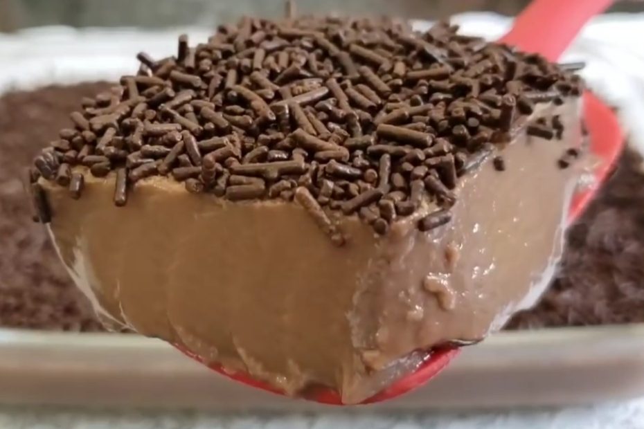 Um brigadeirão cremoso, com textura firme semelhante a mousse ou pudim, ideal para servir em família ou em ocasiões especiais, sem precisar ir ao fogo.